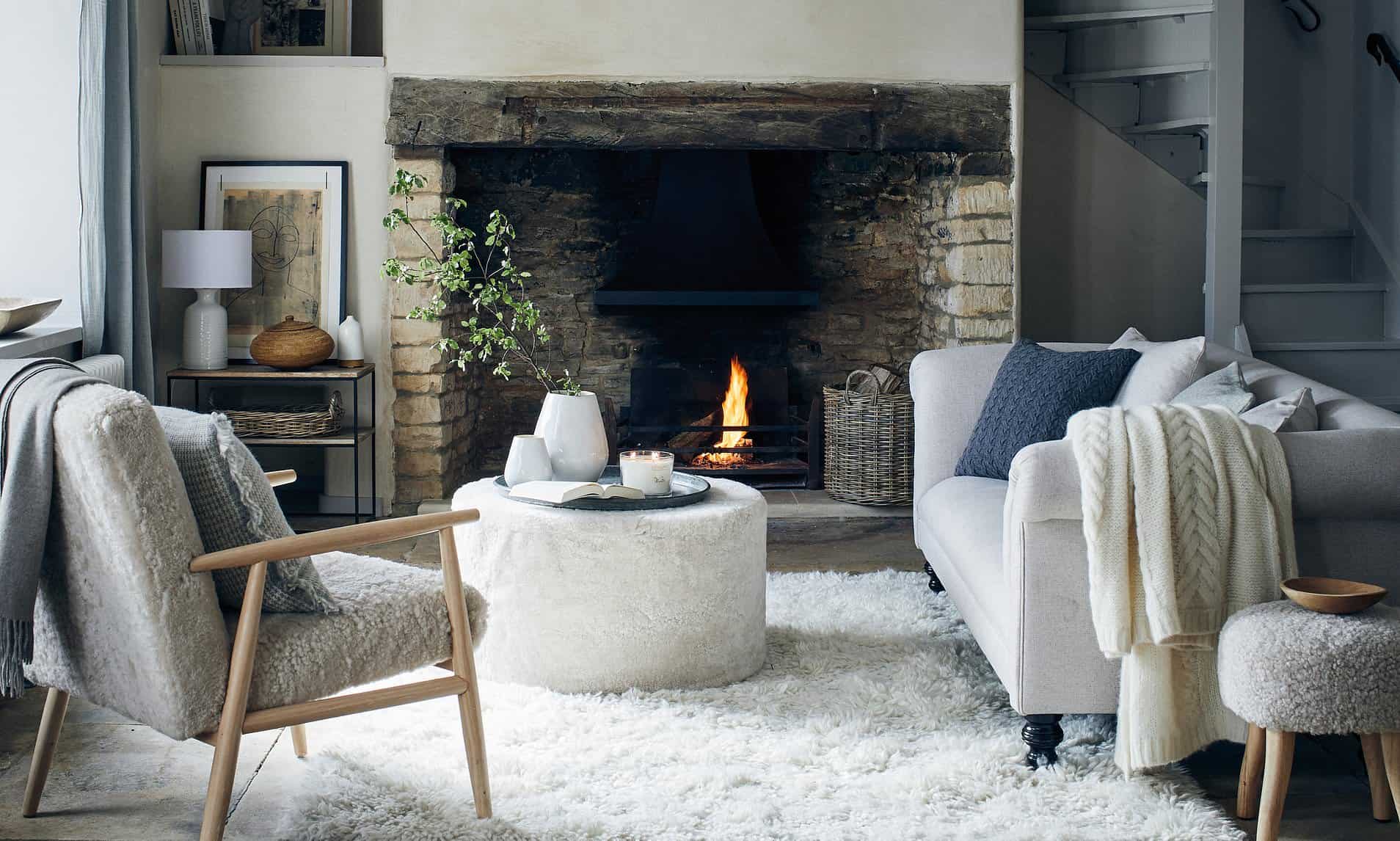 You may have noticed a lot of furnishings of late covered in a woolly texture that resembles the fur of your favourite teddy bear. It’s called ‘boucle’ and is currently all the rage for adding warmth and character to a room. You can drape over armchairs, the backs of sofas bringing in a really soft, tactile and cosy feel. This super-cute winter trend is often found in off-white – have a look around and you’ll find many stores stocking boucle-clad furnishings, including Dunelm who recently launched a whole range of furniture adorned in the cosy fabric.