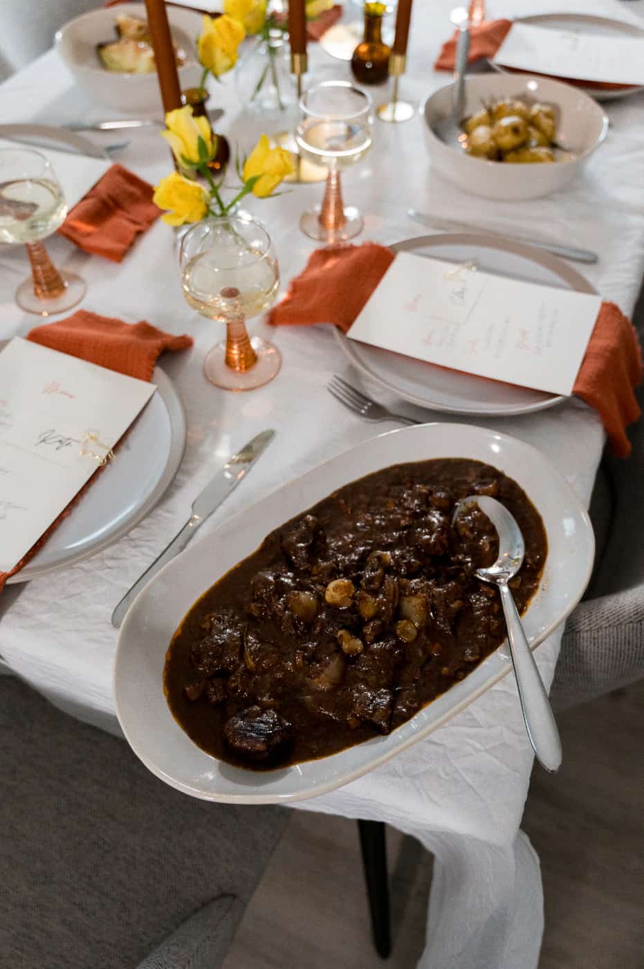 Dinner party set-up at New Maker Yards, as styled by @fabricofmylife